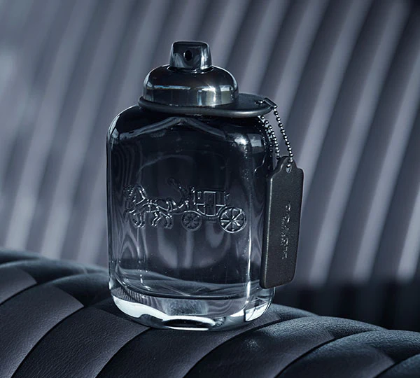 Coach for Men Eau de Toilette is housed in a smoky, midnight blue bottle that references many of the iconic brand's values: a gunmetal spray cap shaped like a turnlock; a distinctive hangtag charm; the quintessential horse and carriage logo engraved into the glass.